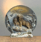 What a unique and moving collectorÕs treasure! In a setting that vividly recalls the early days of America, two stately wolves strike a pose of fierce independence. A wonderful 3-dimensional portrait on a plate. Classic Wildlife Collection. Stand included. 7 1/8" diameter. $19.95