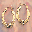 14K Gold Scalloped Puffed Hoop Earrings.