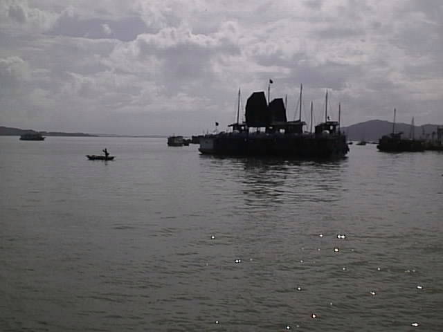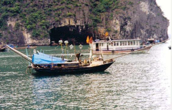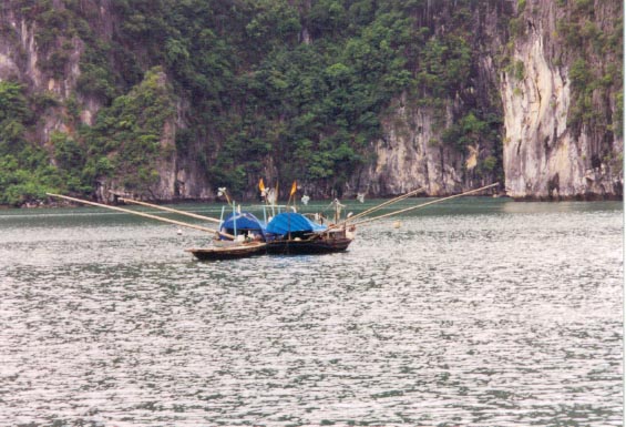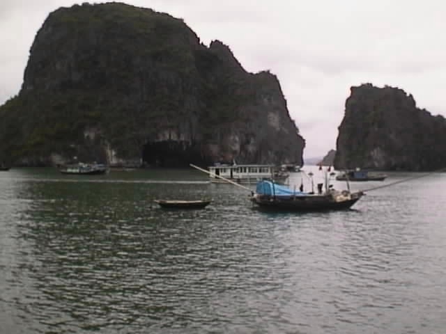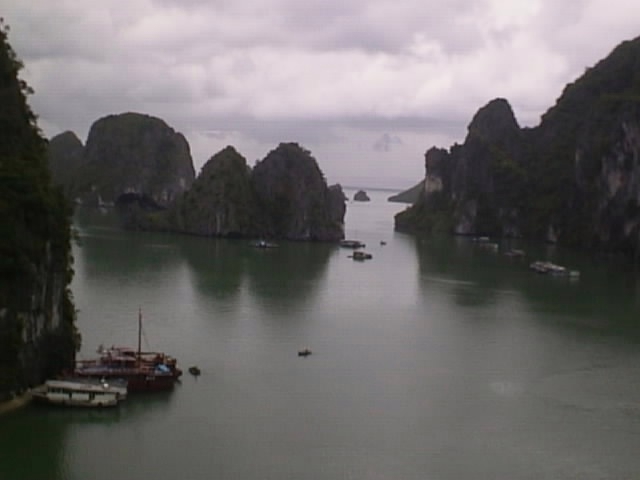 La baie de Halong, c'est trop beau là-bas!! Sauf que là il faisait pas beau ce jour là... domage pour les photos
