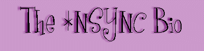 Welcome The *NSYNC Bio Lyrics Sounds Justin Chris Joey Lance JC Tour Dates Latest News Pictures Back Issues Subscribe TV Dates Tickets The Webmistress SiGN THE GUESTBOOK! |