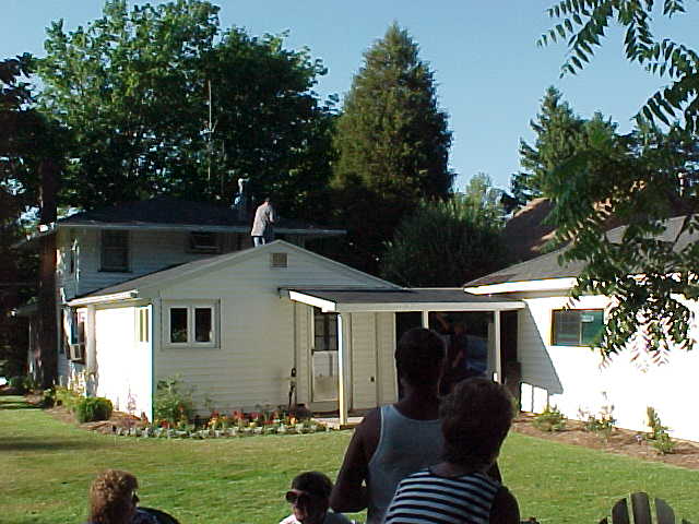Erik quickly takes a strategic position on our roof, first checking the bathroom window for enemies or opportunities.