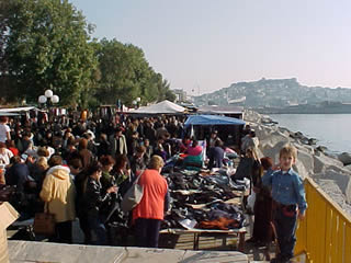 | Saturday farmer's market in Kavala, by the sea. | An aqueduct built by Suleiman (sp?) the Magnificent in the 1600's to supply old-town Kavala with water. |