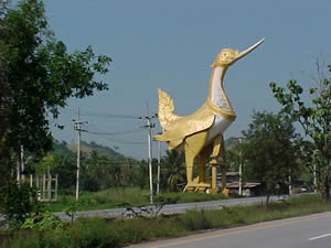 | Thailand has these big sacred chickens that... well, I'm lost on this one, gotta admit. Pretty neat looking, though. | Typical accomodation on the coast - quite nice inside! | |