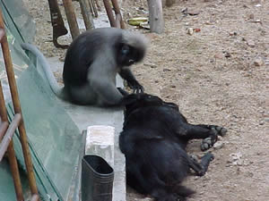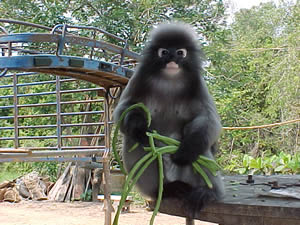 | This guy kept me company in a hut one night - he's about 12-14 inches long and makes a sound like "Gek-kooow!" (appropriately enough). I think they eat chickens. | See Curious George. See George stare at the foreigner while eating. George is curious. | |