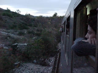 | View from the train between Athens and Larissa. Man, you've gotta watch your head here - the trees literally brush the windows at times. | Me and my new friend, the highwayman. Guess road workers are hard to come by nowadays. At any rate, he made a good companion for me for a while - we communicated about as well as I communicate with most folks here. |