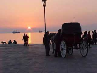 | View from the Thessaloniki harbor. | Ditto, showing the development along (1/2 of) the waterfront. |