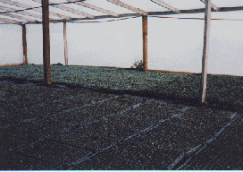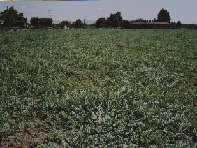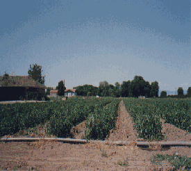 This is tomato field uses drip irrigation. Black plastic mulch keeps water present longer, stimulates faster growth. Uniform yields are more common using these methods than open culture.