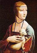 Leonado se estabeleceu na corte do Duque Lodovico, onde, além de pintar, seu protetor exigia seus serviços para diferentes tarefas - supervisionar pagens e instalar "aquecimento central", por exemplo. Este tipo de papel deve ter agradado imensamente tanto ao caráter quanto ao intelecto de Leonardo. De fato, numa carta, ele se descreve como engenheiro e, só de passagem, faz uma referência às suas pintiras. Durante este período também pintou retratos, executou uma importante encomenda, A Última ceia, e terminou grande parte do trabalho preliminar para o monumento aos Sforza, que nunca chegou a ser fundido. |