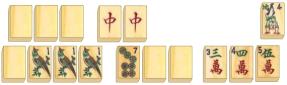 Now the Dealer takes two pairs of Tiles (four total) from the right of the Break and hands them to the East Player. He takes the next two pairs and hands them to the South Player. The Dealer will continue this counter-clockwise until each Player has twelve Tiles. Then the Dealer hands each Player one more tile, starting with the East and finishing with the North Player. Each Player should have thirteen Tiles.
