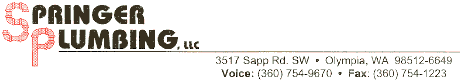 Springer Plumbing, LLC has been serving the Thurston County area for three generations. We take great pride in offering the highest quality service guaranteed. Our courteous and friendly staff are experienced and knowledgeable and happy to help you find a solution to all your plumbing needs. Save Money and pay only by the job and not by the hour. Know the price before the work is done.