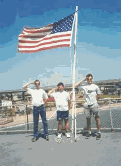 I left lots of the pictures without a comment, but I cannot stay quiet at presenting this picture. As you can see here, there are Thomas, Zenan and Michael saluting beneath the stars and stripes. Very funny, BUT(T), within seconds you’ll realize this are just civil duty’s. Because the way they hold their hands is absolutely unacceptable, the feet are not showing an angle of 90 degrees and the left hand is not at the searn of their trousers.This picture is to memorize the accumulated time of over two days spending at the damn bridge, day and night. Most popular question: What are you bringing in the U.S.? Most popular answer: "Two pounds of the finest snow and twenty Uzi’s!" After this, you’re going to meet lots of interesting important friendly people = Immigration officers. Not because of this sentence, but of different others I tell of lots of experiences. So if you want to have fun, joke around with the nice people there and you nearly get kicked out of the LAND OF THE FREE. j/k