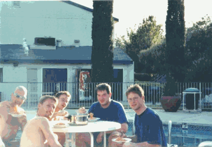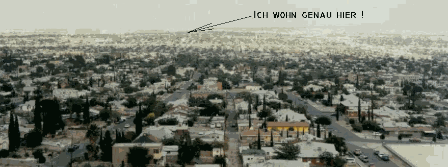When we have our two hours leisure time per month and this just on every month with 27 days, we try to enjoy ourselves a little bit. E.g. some ice at and in the pool. Some chit chat, some chicks, some BBQ, some German Bratwursts or German beer. But please don’t tell anybody, otherwise we have a very good chance to be denounce for PIT (public in toxication). Yes, it’s true, for all my friends in Europe, it’s not allowed having an open or unsealed alcoholic vessel in public or in the same room, where the driver sits. Crazy gringos. Sorry, I forgot to tell you, where I’m living. Hä, hä. Go through it with a fine-tooth comb. Don’t be scared of the shadow, it’s just one of Roland Emmerichs "4th of July" flying saucers trying to attack the oil tanks in the middle of El Paso. |