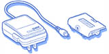 A picture of the GBC Mobile Adapter. Which allows you to get onto the Internet with the Game Boy Color using a cell phone. But you can also use it with the Game Boy Advance, and there are already MANY GBA games that are going to have Internet support. So far the Mobile Adapter is only available in Japan.