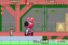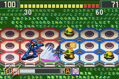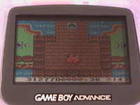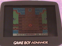 A Game Boy Color game playing on the Game Boy Advance in Stretch Mode. This makes the GBC game the same screen ratio as Game Boy Advance games. But the picture looks a little weird and stretched.