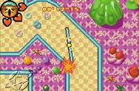 A Game Boy Color game (Kirby's Tilt 'N' Tumble) playing on the Game Boy Advance in GBC Mode. Which puts borders around the screen so the screen ratio stays the same as it was on the GBC.