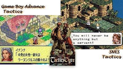 Tactics Ogre on GBA versus the SNES one. Again, left is GBA, right is SNES.