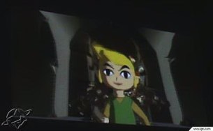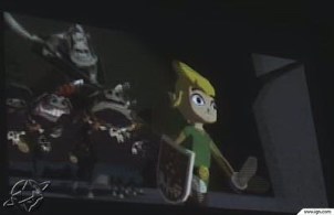 Remember that the pictures are taken off the wall of the huge SpaceWorld screen and thus aren't the best quality. I also tried to resize most of the images that were to big, so some of them might not be exactly proportioned right. Nonetheless, the pics are still viewable. As you can see, the toon shading techniqe is pretty advanced, and looks quite good. If you also notice, the Link looks similar to the Link in Zelda II: Adventure of Link for the NES or something, doesn't he? He looks very old-school. Wonder what the story behind this one will be? Hopefully we'll find out more about it without having to wait until the next SpaceWorld or E3.