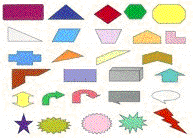 ![]() Next are some shapes that can be used in publications. Just like the letters above they can be manipulated to a variety of shapes, colors , and sizes. The letters above can be put on any of these shapes for a publication.