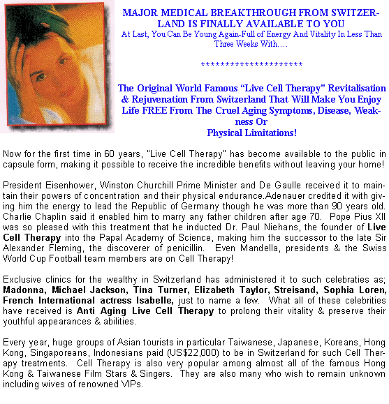 Now, you probably need not go to renowed places in Switzerland for live cell Therapyˇˇˇˇˇ.
