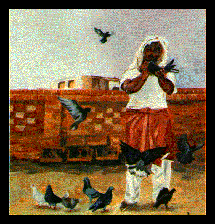 The person who breeds and flies pigeons. The pigeons were attracted first by scattering seeds