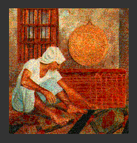 small plates in front of her to sell 'al-bajila and 'al-nakhi'to the residents of the quarter.