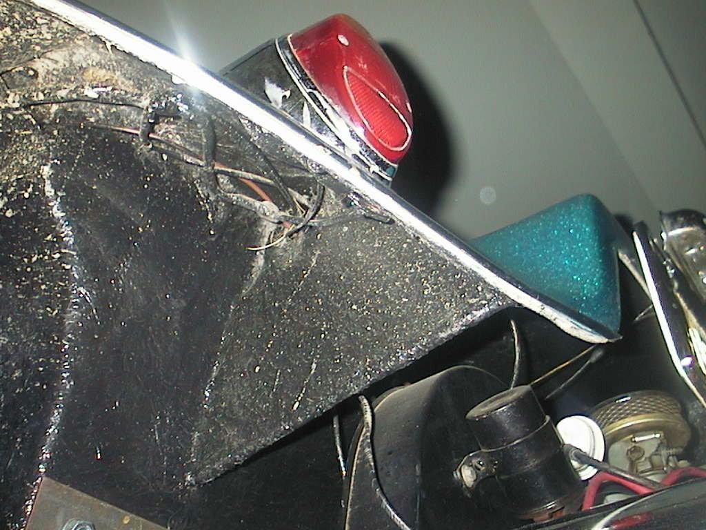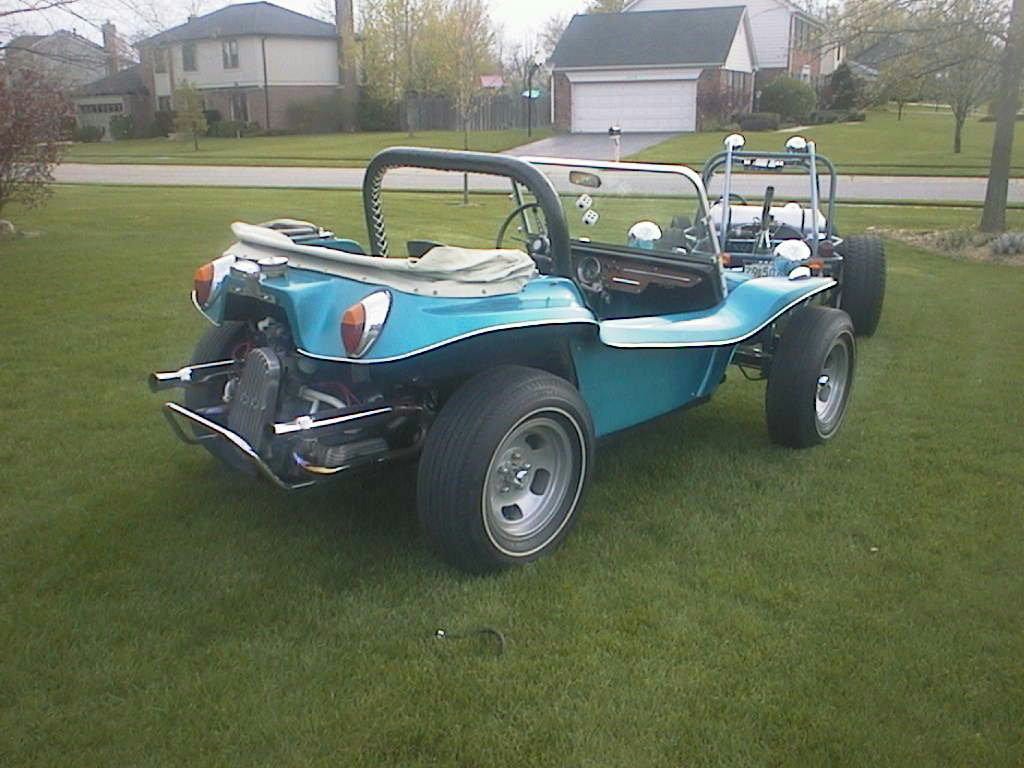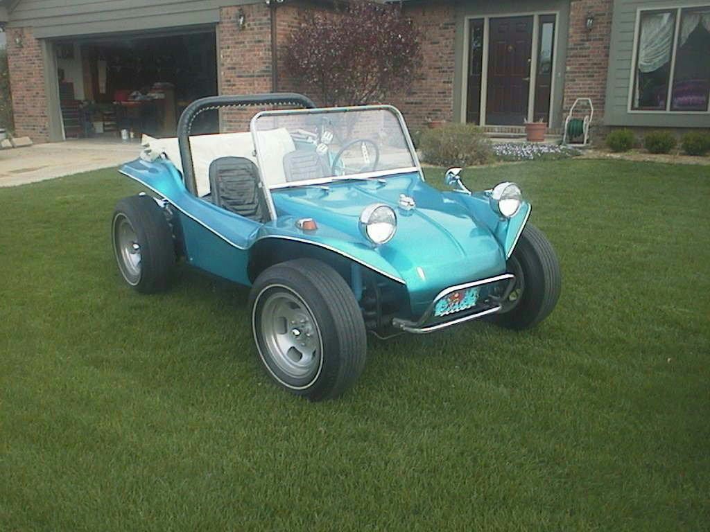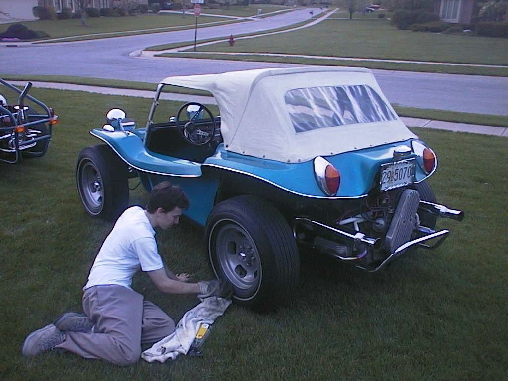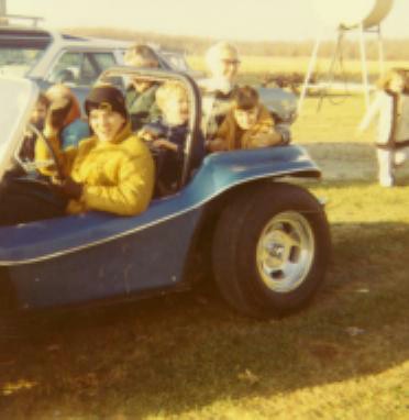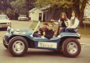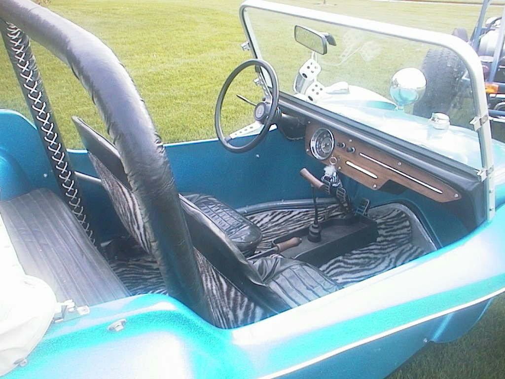 Rick Miller's Late TailRick Miller bought his Rascal body NEW from Sears. He still has it to this day ! Here is some pics of his early days and a bunch his son Logan submitted of its current condition. What a beautiful example, this baby is still in its orriginal (#4) blue gel coat finish. Rick custom made the zebra striped interior himself. Looking closer at the interior picture you will notice that it has the brackets for the wind wings, this was a Sears option. The wooden dash face was optional as well. Also shown is the gusset behind the tail light common to the late tail Rascal - early tail did not have this feature. Ricks body has no box or loop behind the back seat indicating to me that it gave no trouble being removed from the mold. |