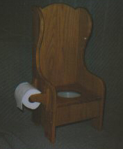 Here is a picture of my newest project. It is a potty chair made of oak. It was made from an altered pattern of a chair. It is finished with MINWAX Woodfinish the color is Golden Pecan. It was made for my granddaughter Alexis' 2nd birthday.