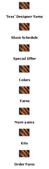 TESS' DESIGNER YARNS began as Pigeon Hill Farm. We had many beautiful Romney sheep with long lustrous fleeces on our ocean-front farm. With the arrival of my daughter Tess in 1986, there wasn't enough time & energy for everyone. Somebody had to go and it wasn't going to be Tess! So I traded my ewes for TONS of fleeces and my rams went on an extended working vacation. Now,Tess & the company I named for her are my priorities. Tess (now 13!) has modeled for our ads & at shows across the country. Tess helps out mostly as a color and fashion consultant and keeps me advised of current trends. You may meet her at shows, also, helping to set up & manage the booth. We offer kits and yarns in exceptional colors at reasonable prices. Hand dyed yarns insure a unique garment. We are fortunate to have top designers sharing their creativity! We invite you to try your hand at designing & enter our new MILLENNIUM DESIGN COMPETITION. All are welcome, new designers to professionals! Our high quality natural fiber yarns let you enjoy every aspect of creative playing - from the winding of the balls of soft luxurious yarn all the way through to the final pleasure of wearing your creations! We want you to be pleased with our yarns and will help you in any way we can to help insure your success. Our toll-free number offers easy access to information and advice.