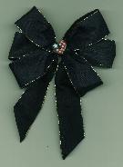 Dress-up the occasion with this patriotic symbol. Bow is navy blue with gold trim, highlighted with a flag heart.