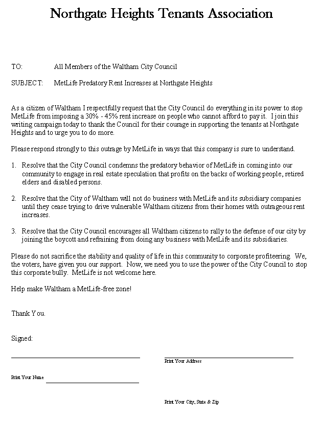 - Condemned the predatory behavior of MetLife in coming into our community to engage in real estate speculation that profits on the backs of working people, retired elders and disabled persons.