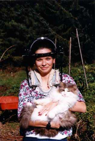 Here's another picture of me, in my Halo, holding my Cat Misty.