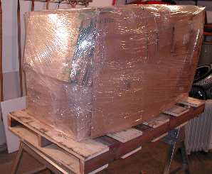 Now it's ready to get strapped on to the pallet and delivered to the trucking terminal.