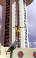 Most of my photo's are aquatic show dives or trick dives. They are about 30 years old and I'm 50 something married with two children. Since my special dives are now too hard for me to do, it is time for me to stop and pass the information on just diving information just like my old high school diving coach. My wife is in charge of the diving cookie jar. We both check the e-mails. My granddaughter Amber is my editor-in-chief and reminds me when I use big words. Granddaughter Britz gives me moral support. Two of our grandchildren are on the home page and, with their parents help, we now have three the youngest just starting to walk. A special thanks goes out to my brother Scott who is now our Web Master and host at chelpers.net (the "c" in chelpers stands for computer). He's the "go to man" when it comes to computers!