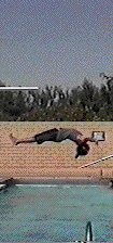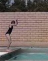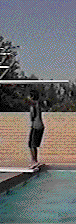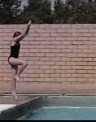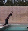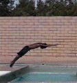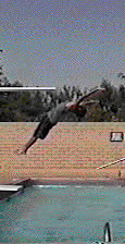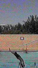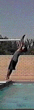 She is up in the air with good form but needs to bend at the waist more at the top of the dive.