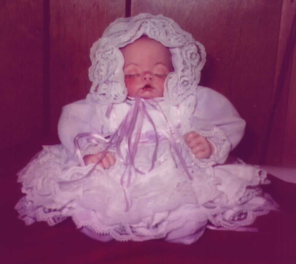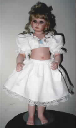 A) Dress w/attached slip B) Apron C) Footed Bloomers D) Bonnet Fits 9" to 12" doll such as Sweetness & Serenity $30.00