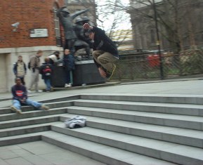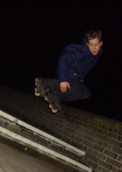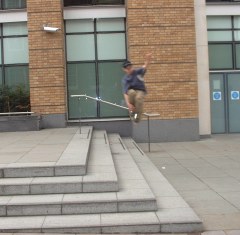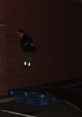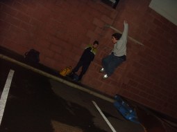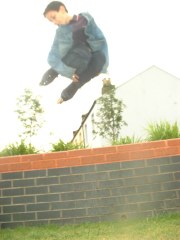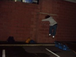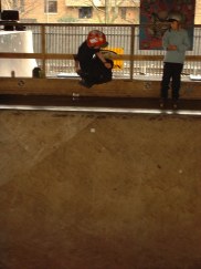 ![]() Nick trying to do a 360 on the mini halp pipe.