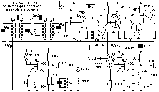 The basic HF receiver is a DC-coupled design, as shown above. The 4K7 and