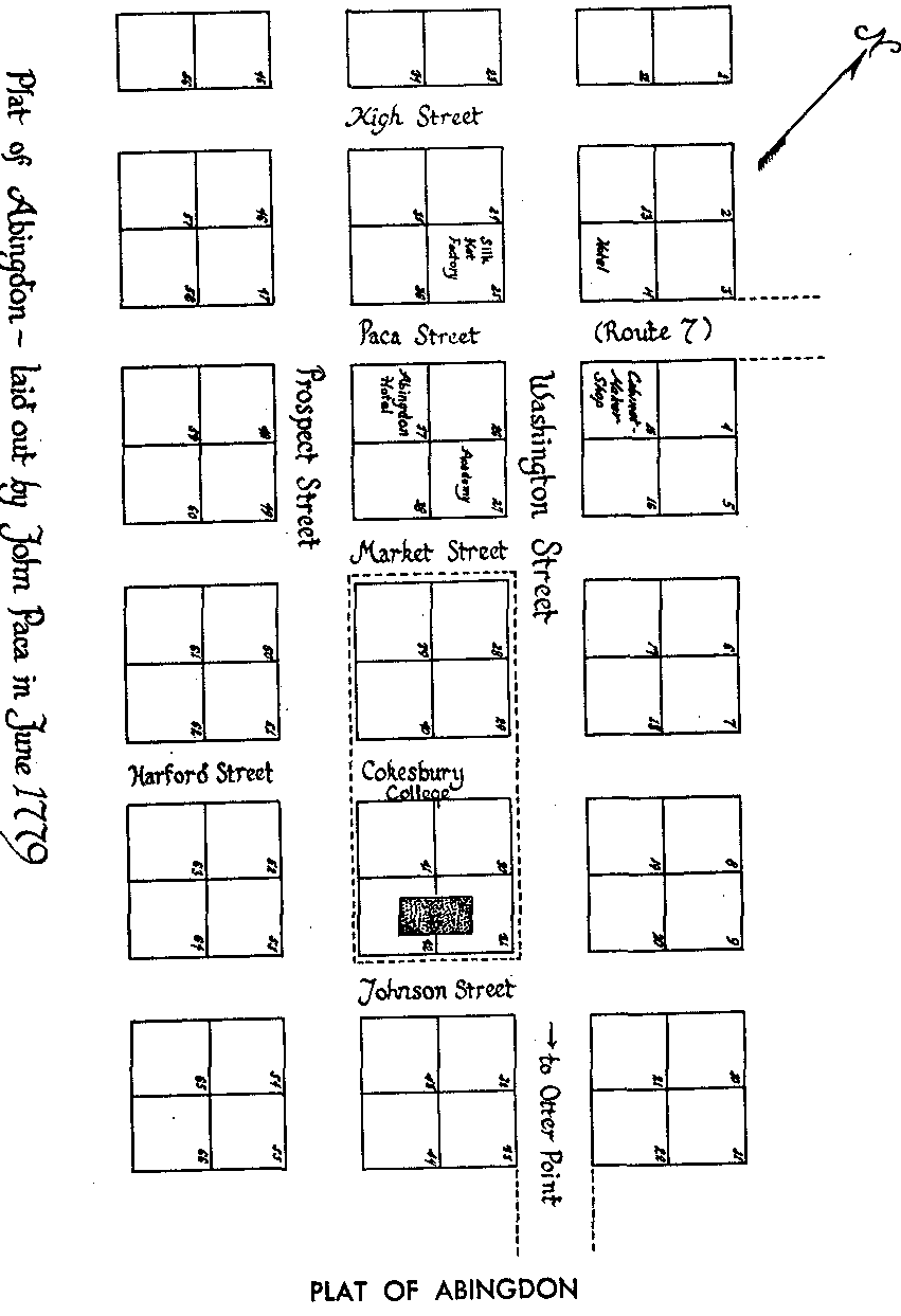 Harford County, Maryland was discovered in 1608 by Captain John Smith of the Virginia Colony (the same John Smith of the Pocahontas legend). He made a fairly accurate map of the upper country and its islands and shores. On this map, he designated many places whose names are still in use today. The island now called Poole's, he named "Powell's Isles" after Nathaniel Powell in his crew. He named Willowbye's River (today's Bush River) after the town in which he was born and in honor of his friend, Lord Willowbye. Smith proceeded northward from the Bush River, passing what is known today as Spesutia Island and Havre de Grace, and into the Susquehanna River. He traveled up the Susquehanna to a stream flowing from the northeast, which is believed to be Deer Creek. The first settlement in the region was made by a young Englishman, Edward Palmer in approximately 1622. Having heard about the Smith exploration, Palmer decided to establish a fur trading post in a spot where he could trade with the Indian trappers to the north. This location, at the mouth of the Susquehanna, was also accessible by water to other trading posts on the Bay and rivers to the south. The name was changed to Garrett Island, in honor of the president of the B & O Railroad John W. Garrett, in 1885. One of the first permanent settlements in the county was on Poole's Island, which was granted to Captain Robert Norris in 1659. About 1649, Col. Utie came from Virginia to explore the upper bay region and find a place to settle. In 1658, Bearson's Island, located a few hundred yards south of Havre de Grace, was granted to Nathaniel Utie. He changed the name to Spesutie, using the Latin Spes-Utie, meaning Utie's Hope. The spelling was later changed to Spesutia as it is known today. Harford County had its beginnings as a part of Baltimore County, which was created in 1659 and included the territory of Baltimore, Harford and Cecil counties. The first county seat, the town of Old Baltimore situated on the east bank of Bush River in what is now Aberdeen Proving Ground, was authorized in 1674. In 1712, the county seat was moved to "Gunpowder Town", located at Joppa on the east side of the Little Gunpowder where Joppatowne now stands. In 1768, after many difficulties in Joppa, including a smallpox epidemic, the county seat was moved to Baltimore. Harford was not organized into a county until 1774. At that time the present territory was fairly well settled; the population amounted to thirteen thousand people. Roads had been laid out, bridges made, churches built and our progenitors lived in a peaceful and well-governed section as citizens of Baltimore County. The Act of the General Assembly of 1773, called for the division of Baltimore County and for the erecting of a new one by the name of Harford, named after Henry Harford, son of Frederick Calvert, the last Lord Baltimore. The boundaries of the county were established as follows: " That part of Baltimore county which is included within the bounds following, to wit: Beginning at the mouth of the little falls of Gunpowder river, and running with the said falls to the fountain head, and from thence north to the temporary line of this province, and thence with the temporary line to Susquehanna river, thence with Susquehanna to Chesapeake bay, and thence with the said bay, including Spesutia and Pool's Islands, to the mouth of the Gunpowder river, and thence up the said river to the beginning aforesaid, shall be and is hereby erected into a new county, by the name of Harford county." In more common language, those boundaries are: The Pennsylvania state line to the North ; The Susquehanna River to the East ; The Chesapeake bay to the South; The Little Gunpowder River and a line due north from its source to the West. The first court for the new county was held on March 22, 1774 at Harford Town, or Bush, located at what is now the junction of Route 7 and Route 136. In 1775, the citizens of Harford county passed "The Bush Declaration", becoming the first organized body of men in the country to proclaim independence from Britain. After the Revolution, in 1782, an election was held to move the County Seat to Bel Air, where it remains to this day. (Information courtesy of : Our Harford Heritage by C. Milton Wright, 1967 and Virtual Harford County web site). The Harford County Coat of Arms was designed by Mr. George Van Bibber and adopted by the County Commissioners on September 28, 1964. In the accepted design the shield is gold to symbolize the wealth of the county and the richness of its fields. Across the shield are waving bends of blue signifying three major county streams - Deer Creek, Bynum Run, and Winters Run. The crest is a two-handed forearm with the right hand holding escrivant, ( heraldic for "writing" ) a white quill symbolizing the pen used by those who wrote and signed the Bush Declaration. The left hand holds a sword as if presenting into the right hand of the nation the skills of reproducing defense materials, emanating from Edgewood Arsenal and Aberdeen Proving Ground. The motto "At the Risque of Our Lives and Fortunes" comprises the last eight words of the Bush Declaration and preserves the same spelling for "risk" that is used in that document. (Information courtesy of : Harford County web site). The town of Abingdon is one of the oldest in Harford County, having been laid out by the Paca family in 1779. It's name stems from an English town in an agricultural center of Berkshire, England. It is situated on the Old Post Road about two miles west of the former county seat at Bush. William Paca, who was born in 1740 at Chilbery Hall, the old Paca family home, was an important and influential citizen who had much to do with the founding of the early town as well as being a signer of the Declaration of Independence. He later built Rose Hill in the small village and lived there for several years. John Paca did the actual laying out of the town, and his plat is recorded in the land re