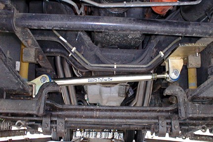 The Davis TruTrac (tm) Bar is designed to elimate wander, reduce rut tracking, and result in crisper, more positive control of the motorhome. The TruTrac (tm) Bar is designed to control the excessive axle side play without preventing normal up and down suspension travel or movement. The TruTrac (tm) Bar comes complete with all necessary parts for installation using factory holes-no drilling or welding required- and will NOT INTERFERE WITH ANY FACTORY WARRANTY. The TruTrac (tm) Bar is cadmium plated and uses hardened polyurethane bushings for long lasting life and better stability. The Davis TruTrac (tm) Bar improves both vehicle safety and performance and increases driver comfort and satisfaction and comes with a 100% customer satisfaction guarantee. Don't settle for knock-offs-get the Original.