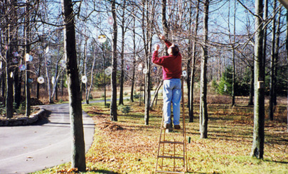 This is my uncle Paul and his tribute to AOL and the free trial CD-Roms they keep sending him. It was a good idea and looked even better in person. The only problem was that when it got windy, they twisted around each other.
