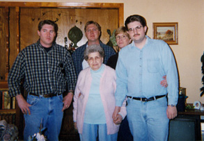 ![]() (above) This is a picture of my cousins Chris and Shane from Texas; and my cousin Mike, aunt Pam, and Grandma Dickey from Missouri. There aren't that many occasions that Grandma gets to see Chris and Shane, but when she does it's picture time!