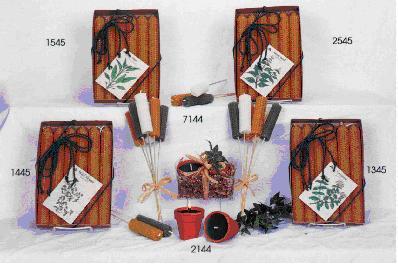 CULINARY HERB - 3 PAIR DARK HONEY 10�TAPERS WITH A PACKET OF CULINARY HERB SEED , TIED WITH FOREST GREEN TWISTED CORD.