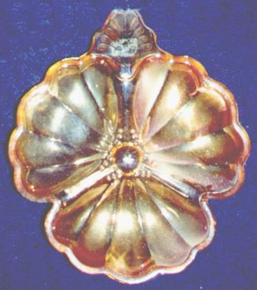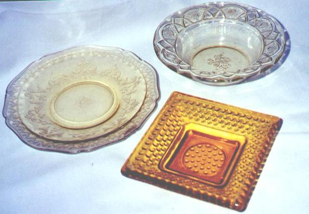 6.Glass Candy Dish.6" Diameter. Transparent golden yellow color with light reflections of pink.