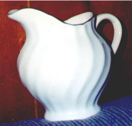 8.Ceramic Cream Pitcher. 5" Tall. White. CERAM ARK engraved on bottom.