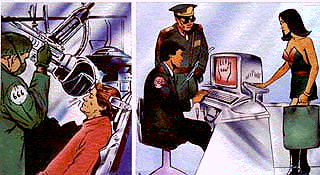In the Sept/Oct issue of our Perhaps Today Magazine and in our unique Lighting New Fires Newsletter which only gets sent to our regular, faithful supporters, reports from Business Week and Wired magazine on Interval Research's application for a patent on the invention of Andrew Singer's "programmable tattoo" was discussed along with other new technologies currently available which could be used to implement the mark of the beast. Popular Science also reported on the significance of the invention in its August issue depicting it as "future cool." Interval Research (Palo Alto) has patented a "programmable tattoo." The biologically inert subcutaneous implant is constructed of a flexible material so as to conform to the skin's surface. The small liquid-crystal display can be inserted just beneath the skin (e.g., in place of a wrist watch). Because human skin is partially transparent, the display is clearly visible. The implant also includes a receiver for receiving programming information from a user, and a display for displaying the programming information through the skin. The display is connected to a control chip and power comes from a small battery. Both of these are implanted beneath the skin. Implanting is an outpatient operation and the battery can be recharged inductively, by holding the wrist near a charger.
