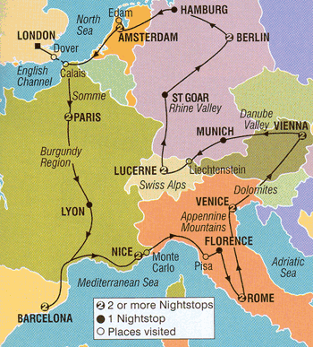 This is an extremely brief tour diary I made while on tour with some maps preceding each half of the tour.