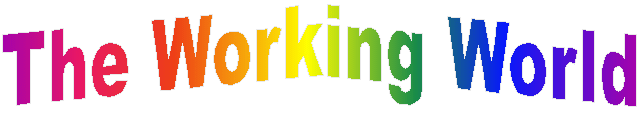 The Working World about anything & everything Employment; Promotions; Careers; Workplace; Management; Credentials; Longevity; Advancement. A 'Three Step' productivity process. About work; for work and everyday life. Getting down to brass tacks. Help, encouragement, places to go, homework helpers and more for parents. Lots of places for you to go with your kids. You'll find a good start here. uniquely for YOU, the woman. in relation to your health and those you love. Meplease let me know if you find a broken (non working) link anywhere in The Working World. |