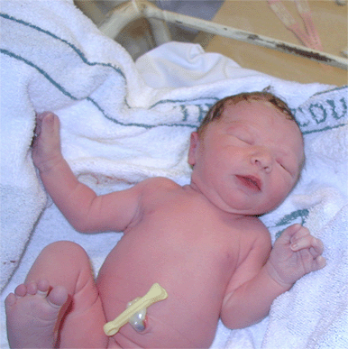 Then suddenly things started to happen real quick, Traci was getting much stronger contractions and we called a midwife in to check her. The midwife checked Traci and said that she was 6cm dilated and that she still had a way to go (lol that's what she though). The contractions started to get stronger and Traci she said felt the need to push and that I should go and get a midwife, so I rushed out of the room to fetch someone and I returned quickly with a midwife how asked Traci a few questions and said that they will get a delivery room ready for us straight away. She off the midwife went, and the next contraction Traci screamed at me that the baby was coming so I ran out of the room screaming down the corridor that the baby was coming, but as I was going down the corridor I heard Traci cry that the head was out, I rushed back in the room to see the babies head out and as I got to the side of the bed there was a big gush of water and out came the baby! Moments later 4 or 5 midwifes came into the room to find me, Traci and Megan ( I guess midwifes are like buses, there aren't any around for ages and then they all come at once).