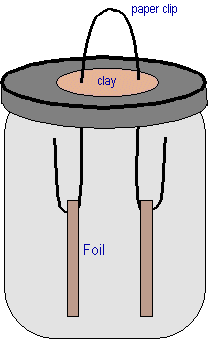 The pieces of foil should move away from each other. This is because when you rub the balloon on the scarf you positively charge the balloon. When you move the charged balloon over the jar you charge both pieces of foil negatively. Because they're both charged negatively they repel or move away from each other.