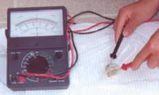 - Place the wires on the multitester on either end of the stack. If there is no reading on the multitester, reverse the wires.